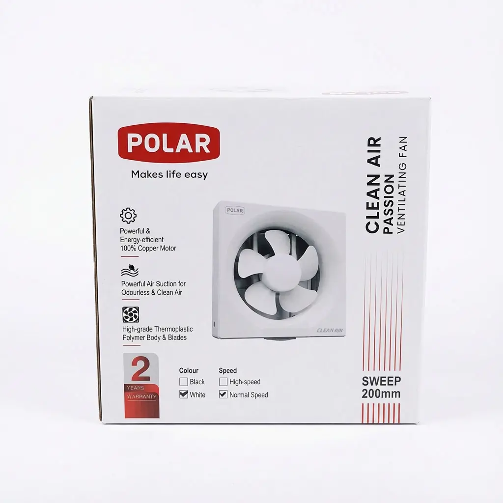 POLAR Axial Clean Air Passion 200mm (8″) PVC exhaust fan with powerful air suction, 100% copper motor and low-noise operation for clean ventilation.